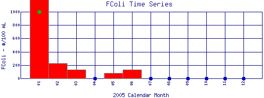Fecal Coliform Time Series for 2005 Boulder Creek at 61st St. |