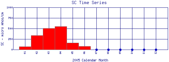 Specific Conductance Time Series for 2005 Boulder Creek at 61st St. |