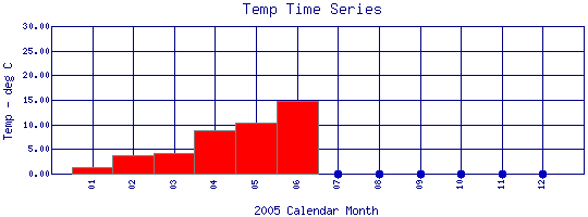 Water Temperature Time Series for 2005 Boulder Creek at 61st St. |