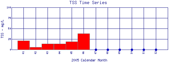 Total Suspended Solids Time Series for 2005 Boulder Creek at 95th St |