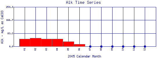 Total Alkalinity Time Series for 2005 Boulder Creek at Eben G. Fine Park |