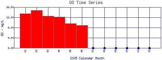 Dissolved Oxygen Time Series for 2005 Boulder Creek at Eben G. Fine Park |