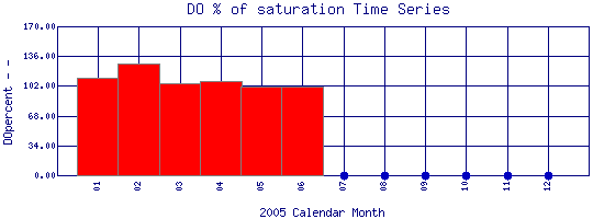 DO Percent of Saturation Time Series for 2005 Boulder Creek at Eben G. Fine Park |