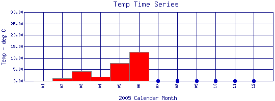 Water Temperature Time Series for 2005 Boulder Creek at Eben G. Fine Park |