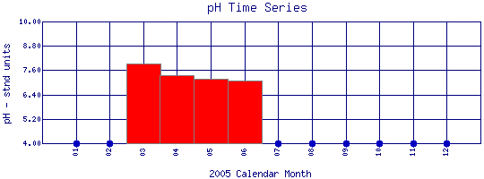 pH Time Series for 2005 Boulder Creek at Orodell |