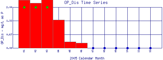 Ortho-phosphate Time Series for 2005 Boulder Creek above Dry Creek |