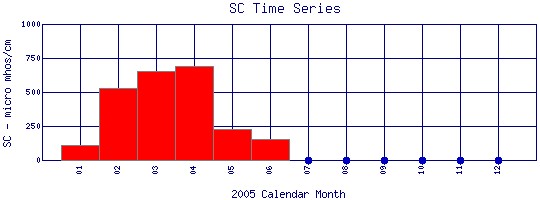 Specific Conductance Time Series for 2005 Boulder Creek above Dry Creek |