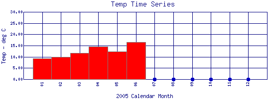 Water Temperature Time Series for 2005 Boulder Creek above Dry Creek |