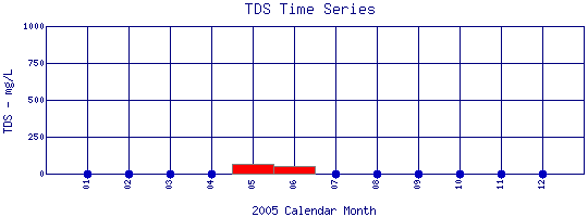 Total Dissolved Solids Time Series for 2005 Middle Boulder Creek Above North Boulder Creek Confluence |