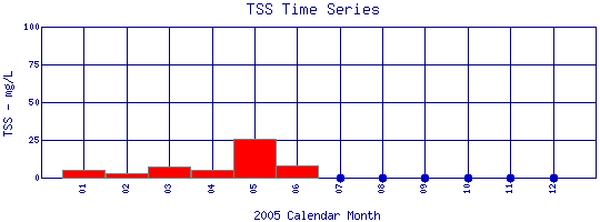 Total Suspended Solids Time Series for 2005 Boulder Creek above WW Plant |