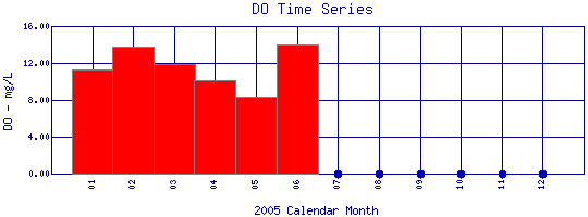 Dissolved Oxygen Time Series for 2005 Boulder Creek Below Coal Creek |