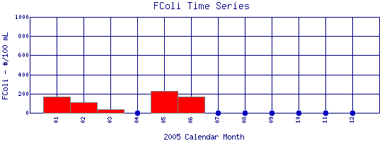 Fecal Coliform Time Series for 2005 Boulder Creek Below Coal Creek |