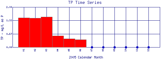 Total Phosphate Time Series for 2005 Boulder Creek Below Coal Creek |