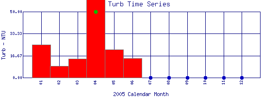 Turbidity Time Series for 2005 Boulder Creek Below Coal Creek |