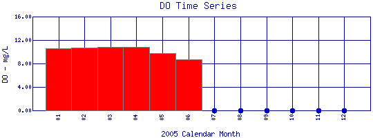 Dissolved Oxygen Time Series for 2005 North Beaver Creek @ Middle Boulder Creek |