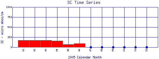 Specific Conductance Time Series for 2005 North Beaver Creek @ Middle Boulder Creek |
