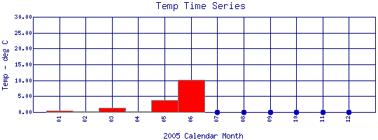 Water Temperature Time Series for 2005 North Beaver Creek @ Middle Boulder Creek |