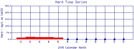 Total Hardness Time Series for 2005 Como Creek where it enters Lakewood Res. |