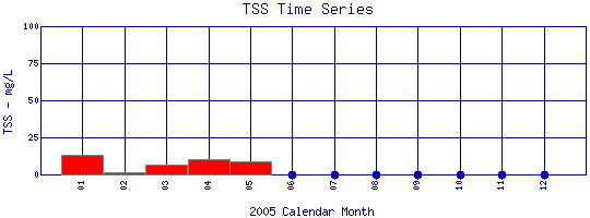 Total Suspended Solids Time Series for 2005 Como Creek where it enters Lakewood Res. |
