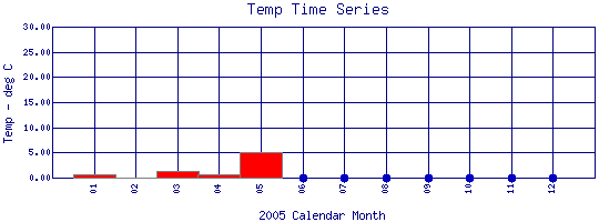 Water Temperature Time Series for 2005 Como Creek where it enters Lakewood Res. |