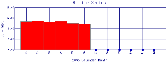 Dissolved Oxygen Time Series for 2005 Middle Boulder Creek at PSCo Weir |