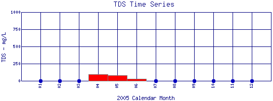 Total Dissolved Solids Time Series for 2005 North Boulder Creek at Boulder Falls |