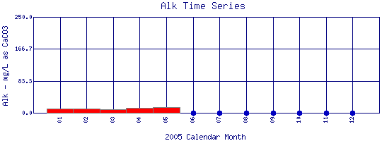 Total Alkalinity Time Series for 2005 Silver Lake Pipe outfall in Lakewood Reservoir |