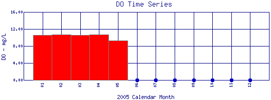 Dissolved Oxygen Time Series for 2005 Silver Lake Pipe outfall in Lakewood Reservoir |