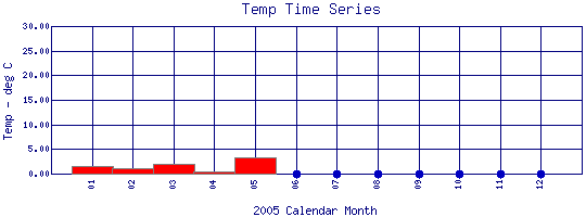 Water Temperature Time Series for 2005 Silver Lake Pipe outfall in Lakewood Reservoir |