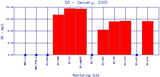 Longitudinal Dissolved Oxygen Profiles for January, 2005