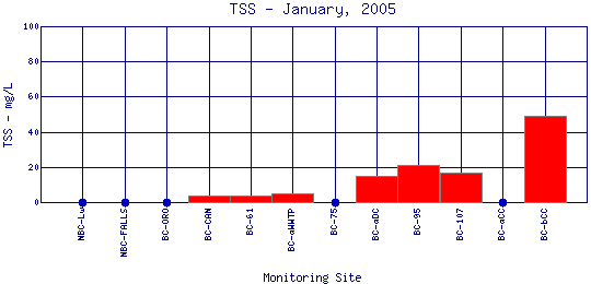 Longitudinal Total Suspended Solids Profiles for January, 2005