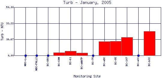Longitudinal Turbidity Profiles for January, 2005