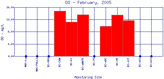 Longitudinal Dissolved Oxygen Profiles for February, 2005