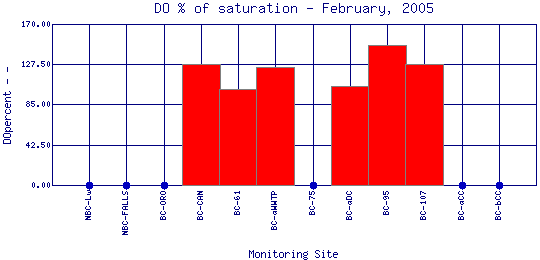 Longitudinal DO Percent of Saturation Profiles for February, 2005