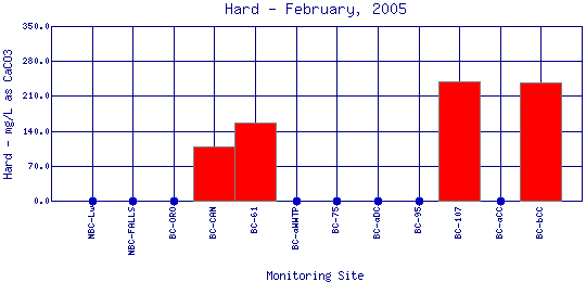 Hardness generally refers to the amount of calcium and magnesium in water. In household use, these cations (ions with a charge greater than +1) can prevent soap from sudsing and leave behind a white scum in bathtubs. In the aquatic environment, calcium and magnesium help keep fish from absorbing metals, such as lead, arsenic, and cadmium, into their bloodstream through their gills. Therefore, the harder the water, the less easy it is for toxic metals to absorb onto gills. Water in the Boulder Creek watershed is generally soft because the water comes mainly from melting snow which is low in minerals and metals.