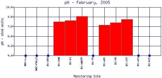 The above map indicates water quality monitoring sites. To view data at a specific site select it from the map with the mouse.