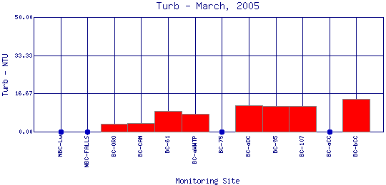 The above map indicates water quality monitoring sites. To view data at a specific site select it from the map with the mouse.
