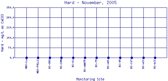 The above map indicates water quality monitoring sites. To view data at a specific site select it from the map with the mouse.