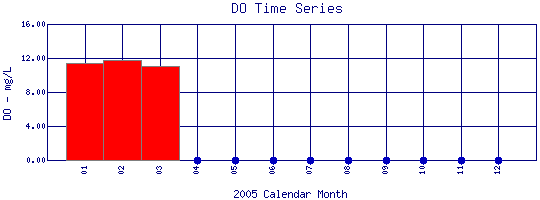 Dissolved Oxygen Time Series for 2005 Boulder Creek at 107th St |
