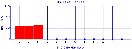 Total Dissolved Solids Time Series for 2005 Boulder Creek at 107th St |