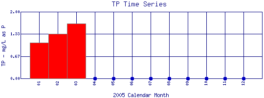 Total Phosphate Time Series for 2005 Boulder Creek at 107th St |
