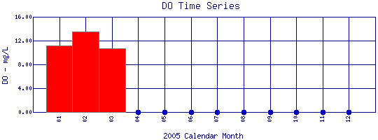 Dissolved Oxygen Time Series for 2005 Boulder Creek at 95th St |