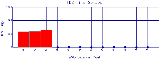 Total Dissolved Solids Time Series for 2005 Boulder Creek at 95th St |