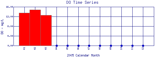 Dissolved Oxygen Time Series for 2005 Boulder Creek at Eben G. Fine Park |