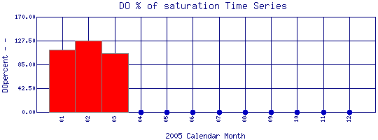 DO Percent of Saturation Time Series for 2005 Boulder Creek at Eben G. Fine Park |