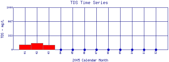 Total Dissolved Solids Time Series for 2005 Boulder Creek at Eben G. Fine Park |