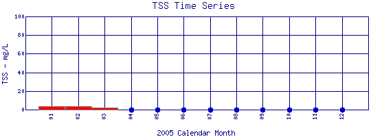 Total Suspended Solids Time Series for 2005 Boulder Creek at Eben G. Fine Park |