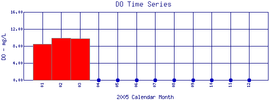 Dissolved Oxygen Time Series for 2005 Boulder Creek above Dry Creek |