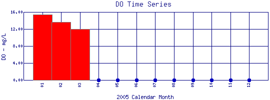 Dissolved Oxygen Time Series for 2005 Boulder Creek above WW Plant |