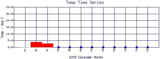 Water Temperature Time Series for 2005 Boulder Creek above WW Plant |